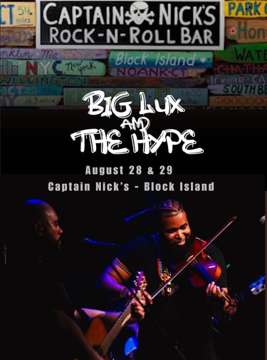 Big Lux and The Hype bring a bold fusion of Hip Hop and R&B, combining dynamic energy with top-tier musicianship. Led by Big Lux—a violinist, activist, and songwriter—the band delivers powerful performances that push genre boundaries. Tony Marshall commands the stage with his soulful vocals and guitar, while Matty G. adds depth with keys and keytar, and Jacob Graham drives the rhythm on drums. Together, they create a groove-heavy sound that captivates audiences, offering a fresh and dynamic take on modern Hip Hop and R&B.